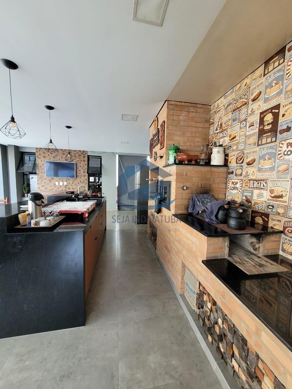 - espaço gourmet com churrasqueira e armários planejados