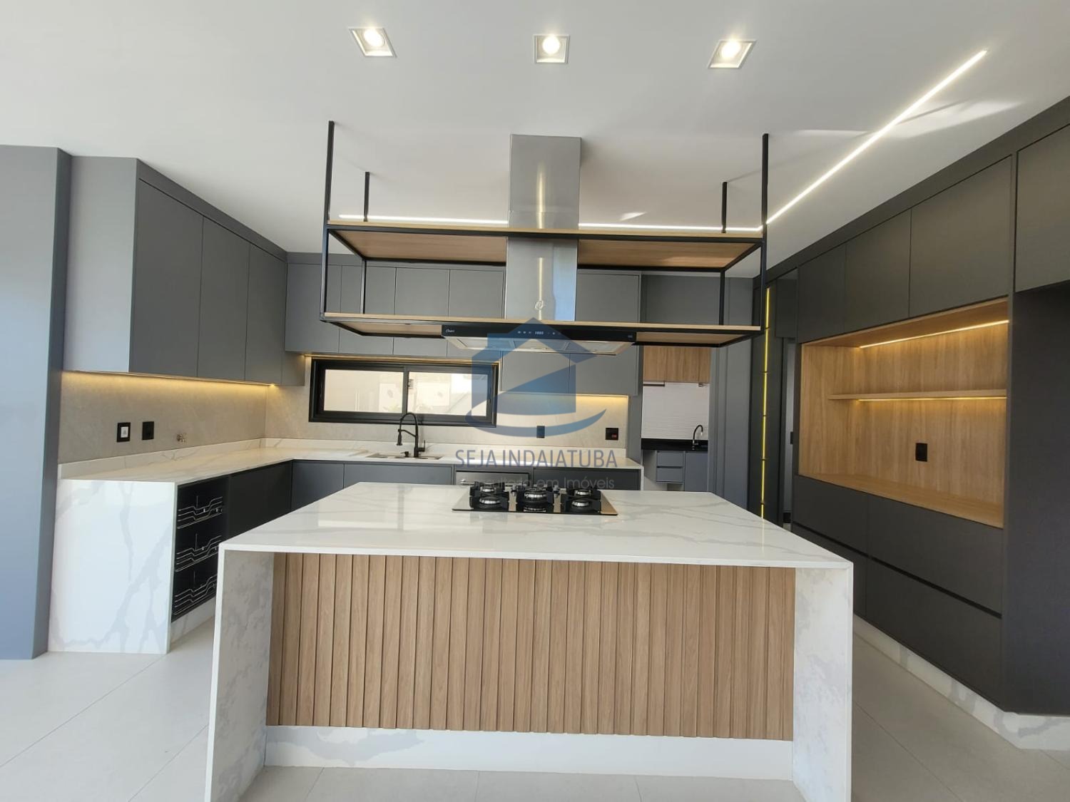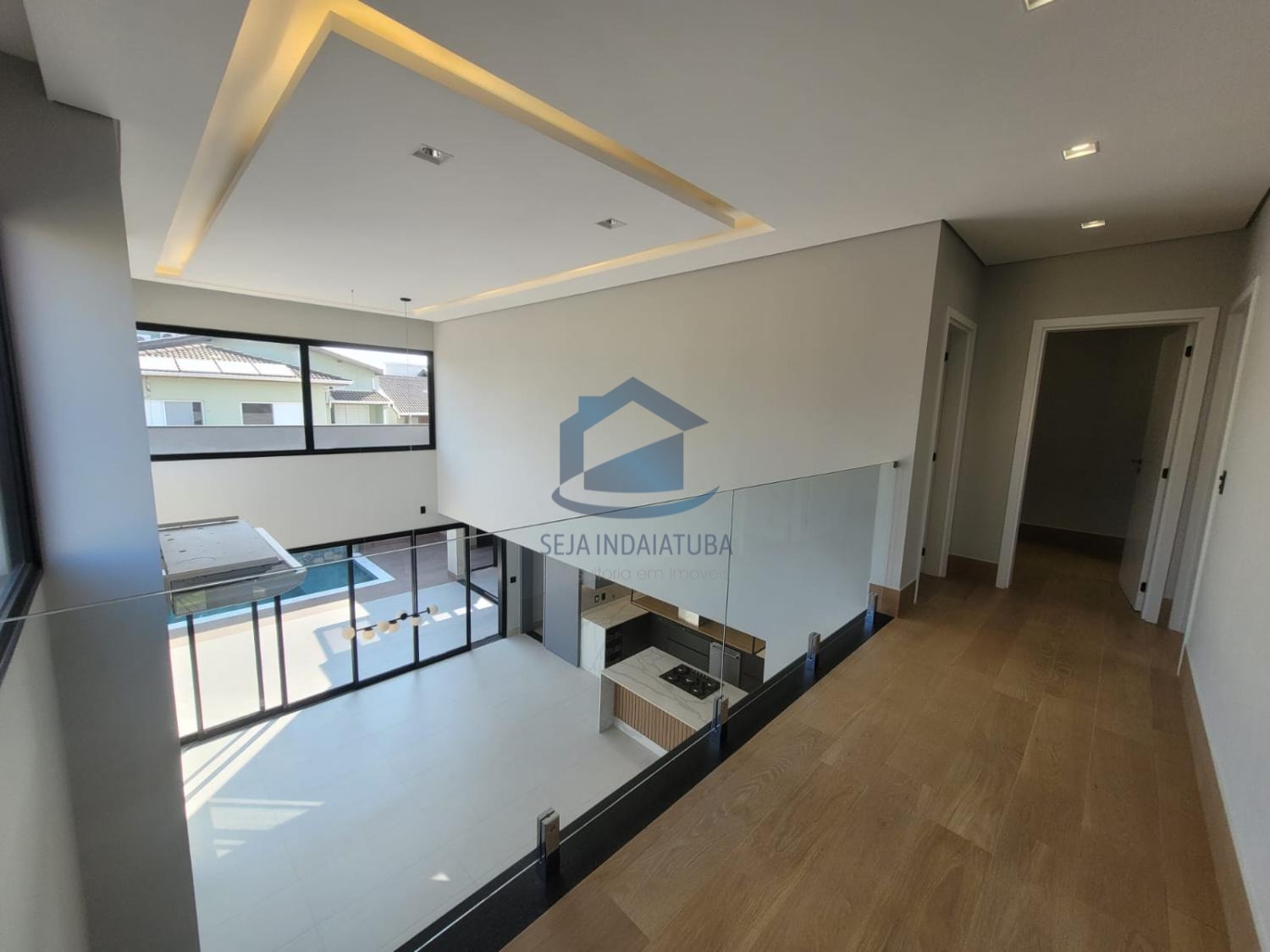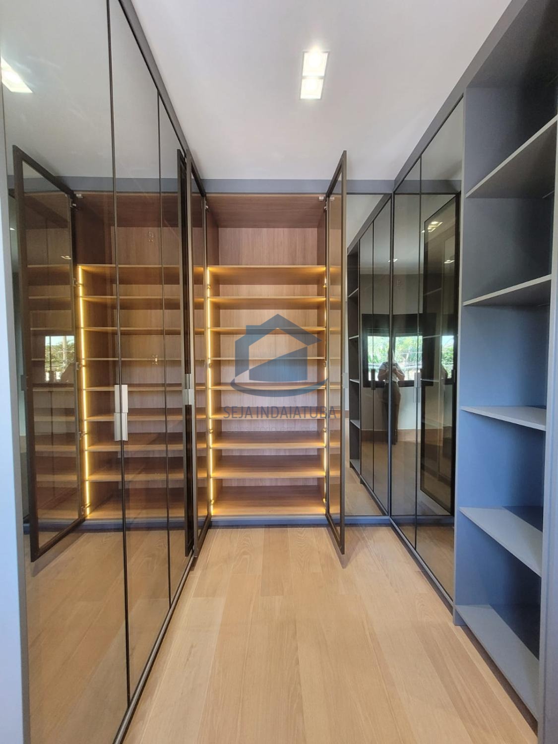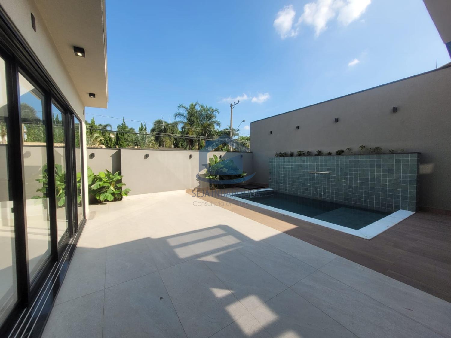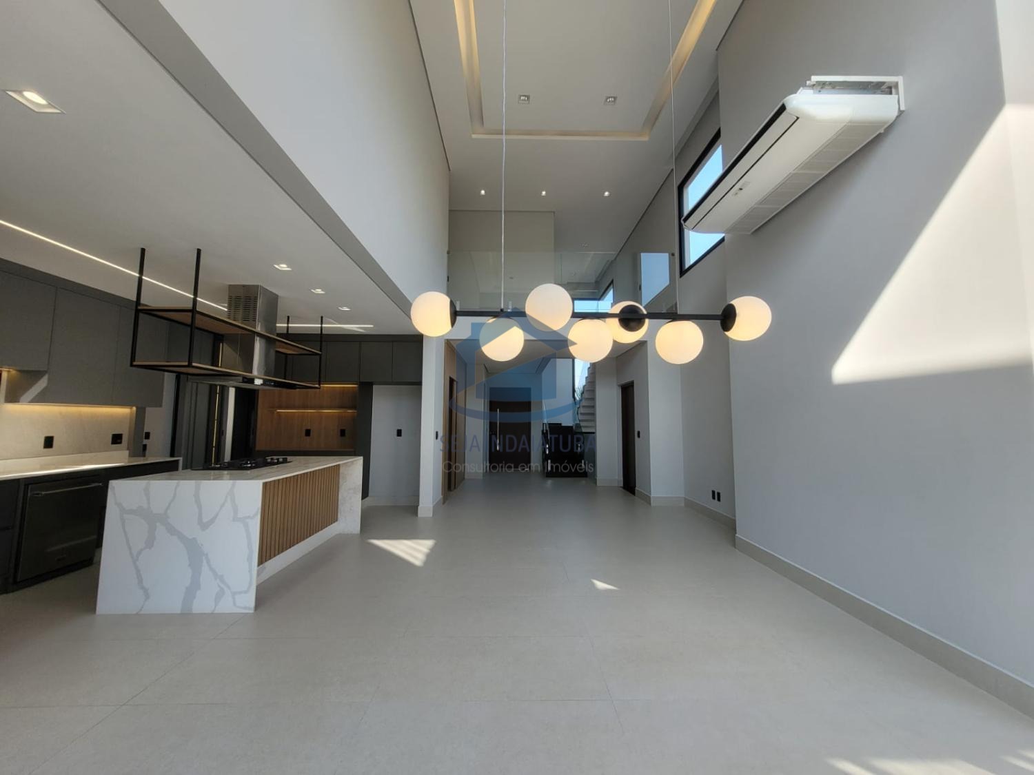 A casa possui 3 suítes, sendo duas delas com closet, e um acabamento de primeira qualidade com porcelanatos Portobello e iluminação em LED. Além disso, a casa possui planejados na cozinha, banheiros, área gourmet e nas suítes. Também conta com sistema de som nos ambientes via Bluetooth e Wi-Fi. Há uma piscina com cascata e iluminação em LED, área gourmet, 1 lavabo, sala e cozinha integrada, sala home, pé direito de 9 metros. A propriedade possui uma garagem para 4 carros grandes, com 3 vagas cobertas e 3 descobertas.