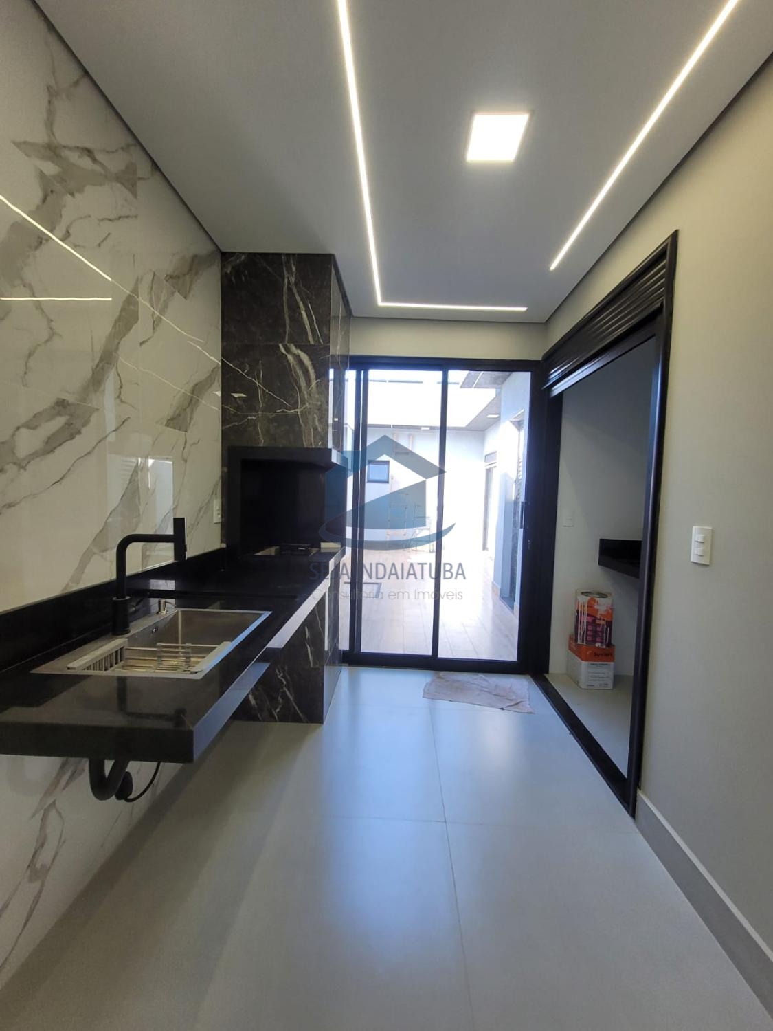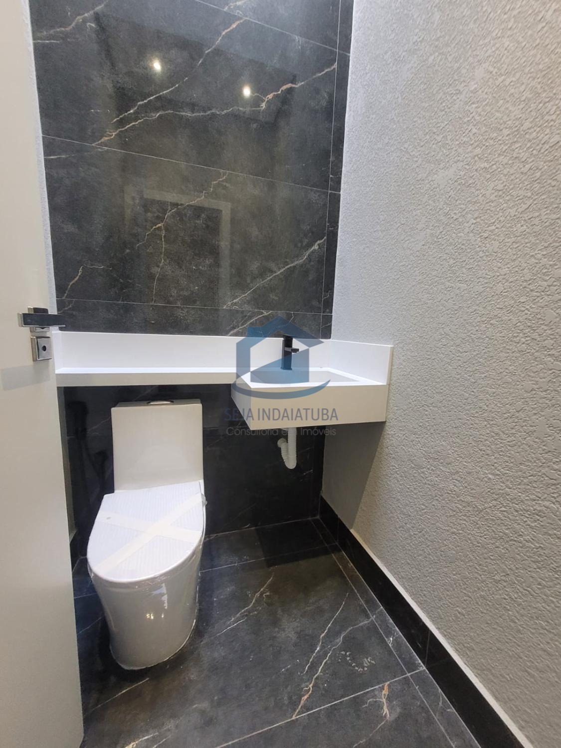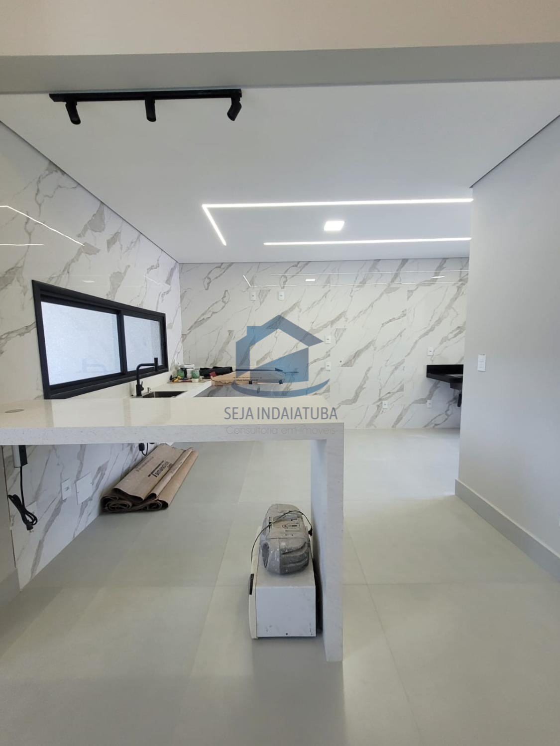 -Pia e balcão da cozinha em quartzo branco estellar, banheiros em branco prime, soleiras e pia gourmet em preto São Gabriel.
