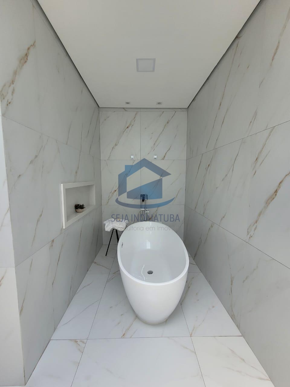 * Suíte casal com banheira, pia dupla, chuveiro duplo e clara boia. Além de ampla sacada com linda vista permanente.