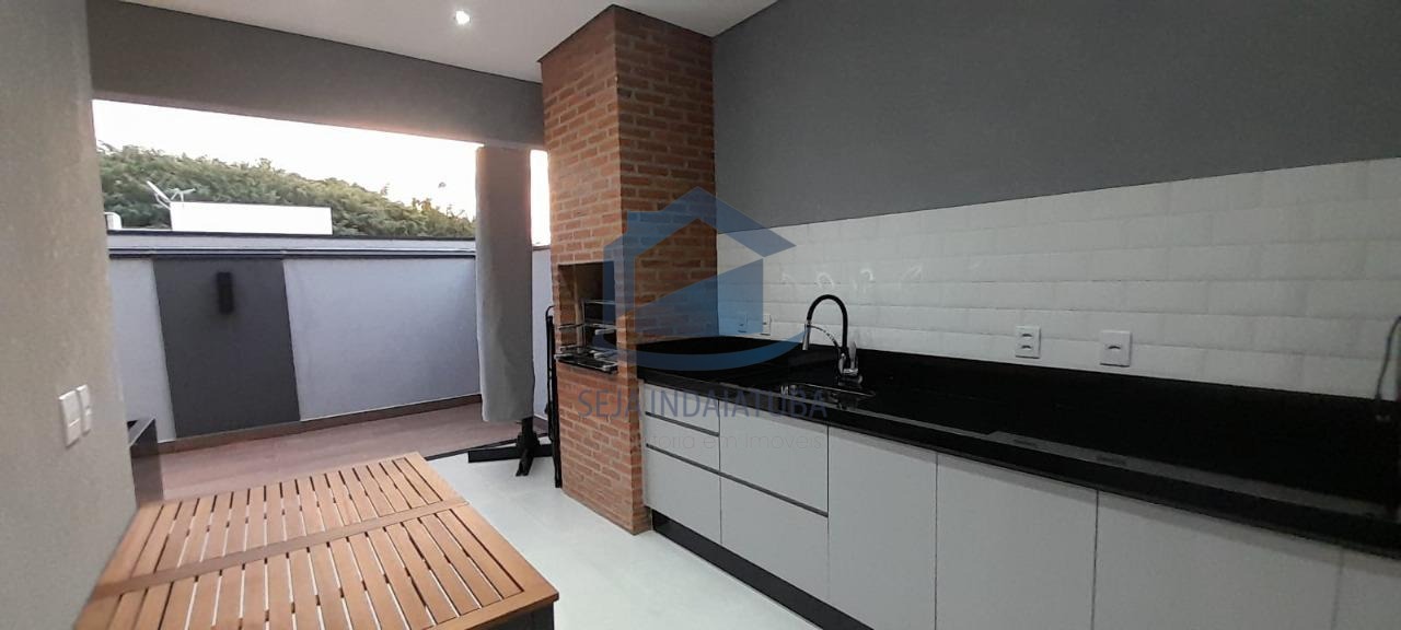 churrasqueira em ambiente integrado, 03 dormitórios sendo uma suíte master