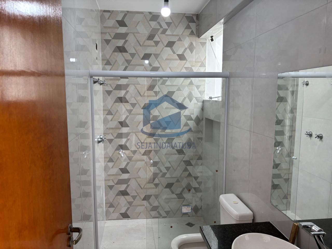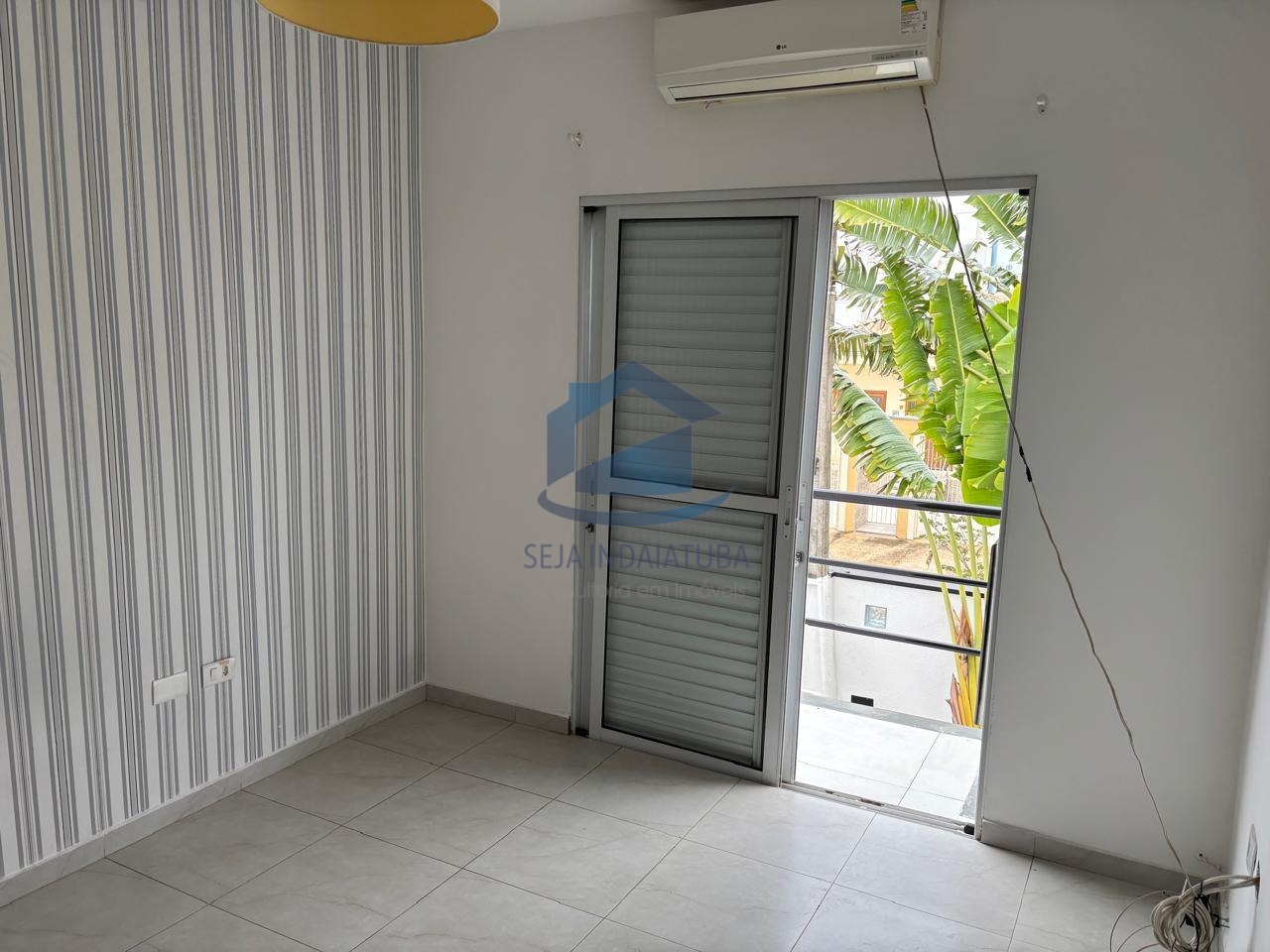 Parte superior com 3 quartos sendo uma suíte com ar condicionado e um banheiro social.