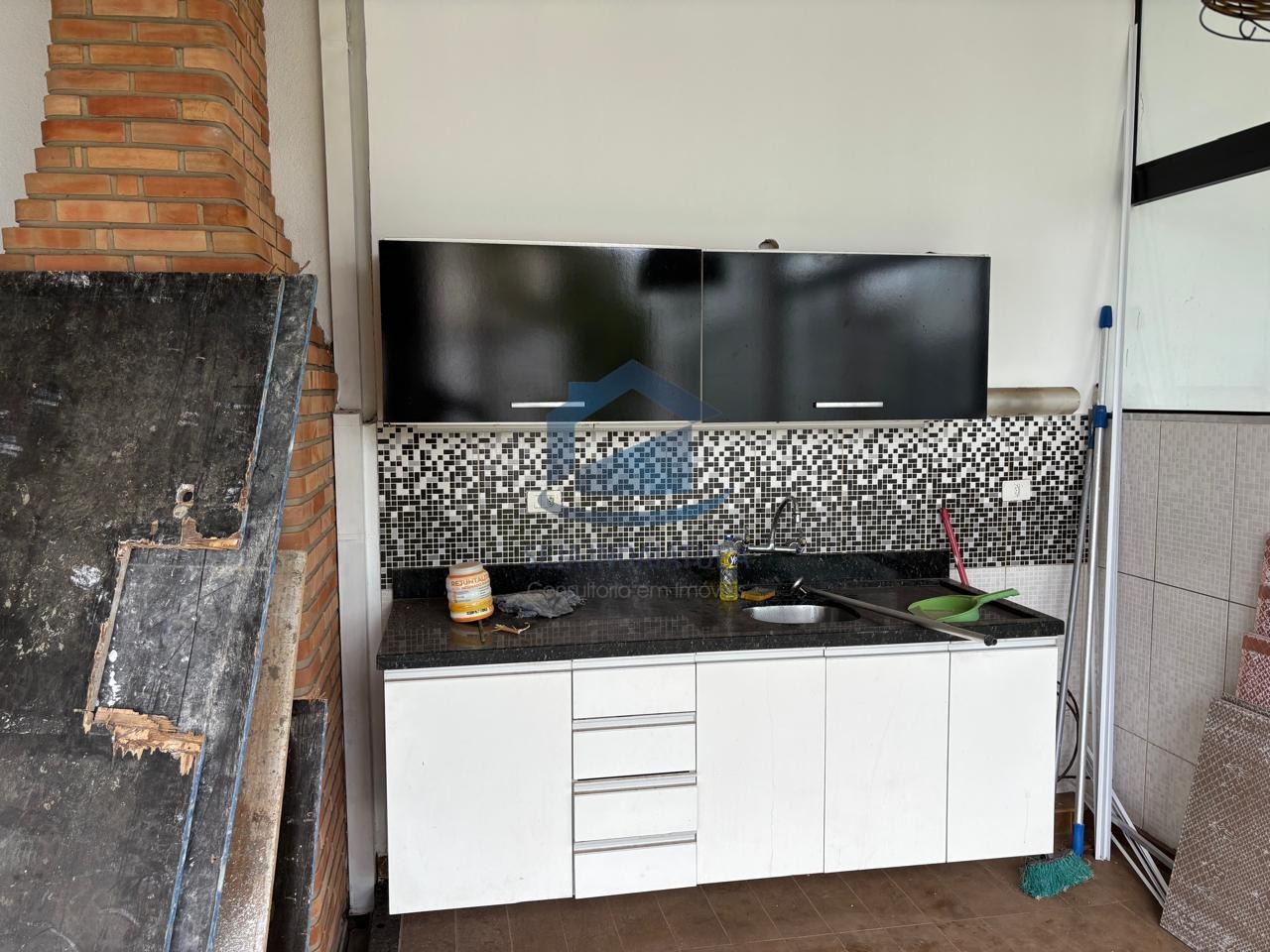 Área gourmet com churrasqueira e garagem para 4 carros sendo 2 cobertos e portão eletrônico.