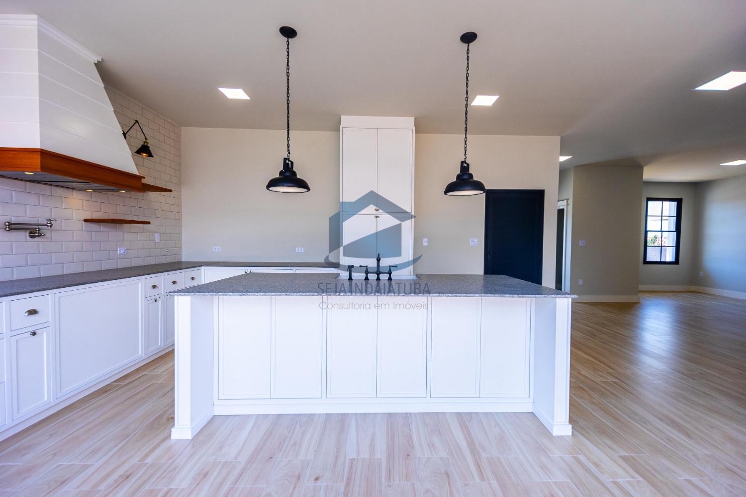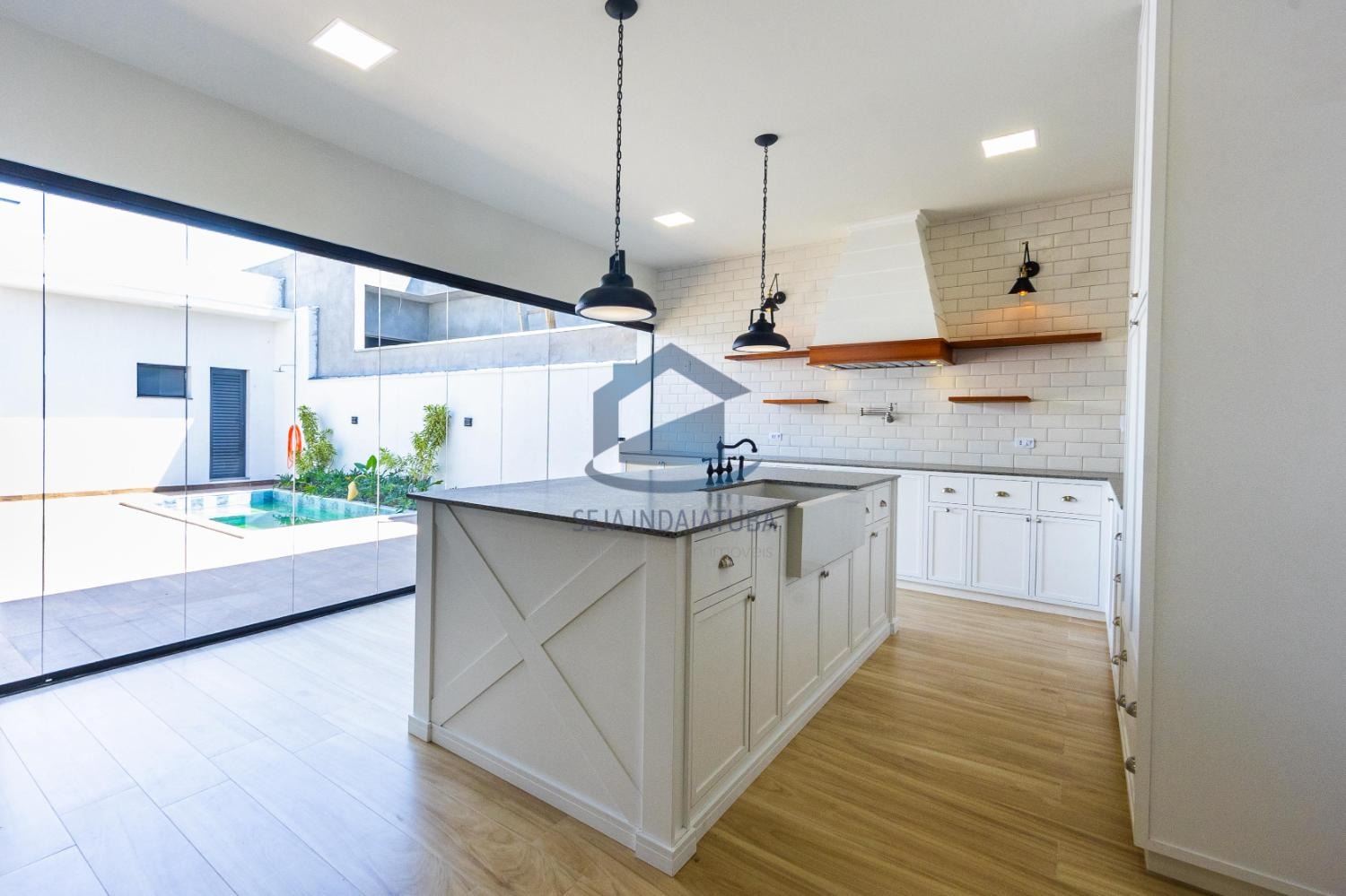 - Ilha central com cuba “farm-sink” e ducha