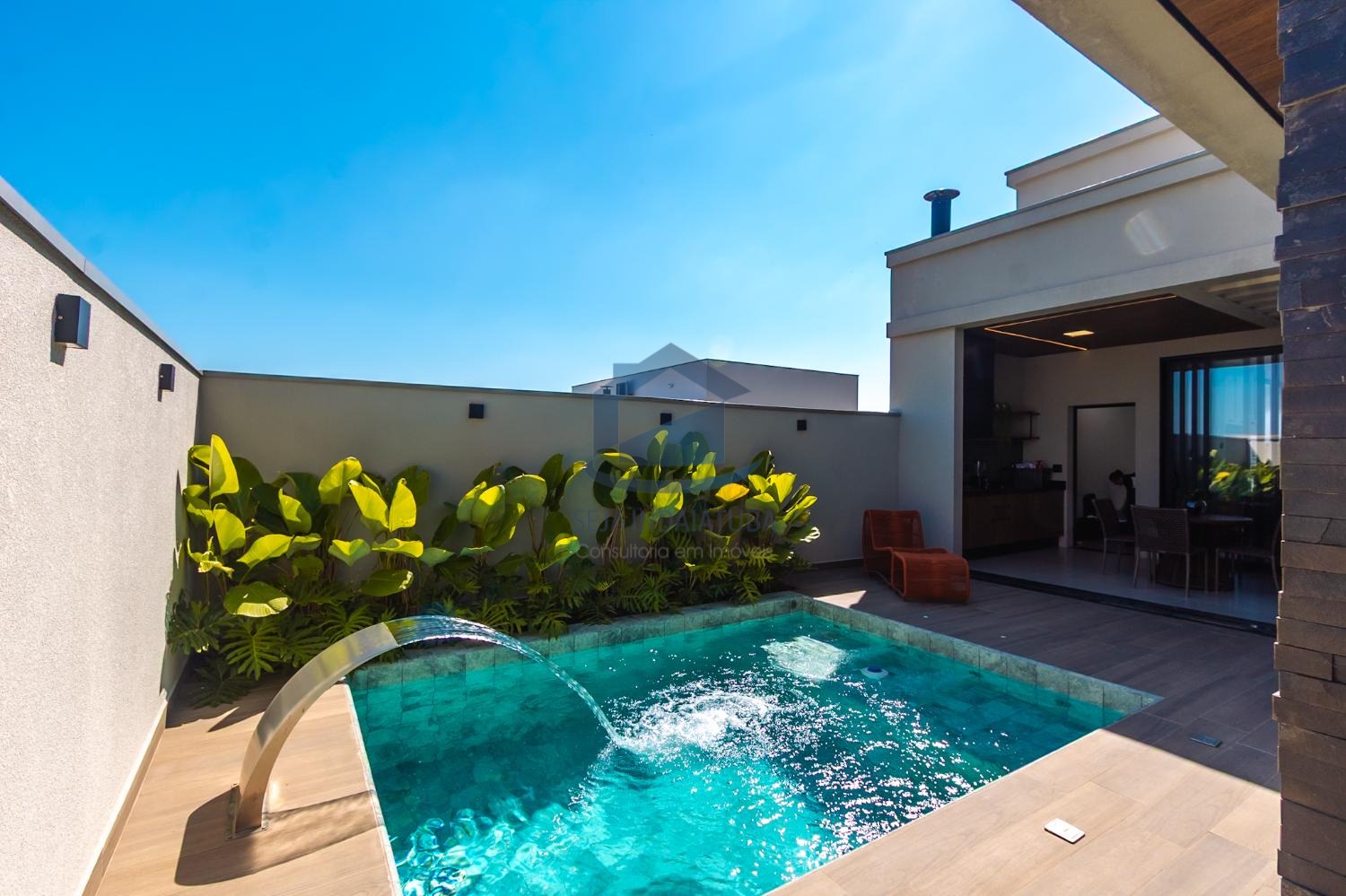 ● A piscina tem iluminação em led também com diversas opções de cores.
