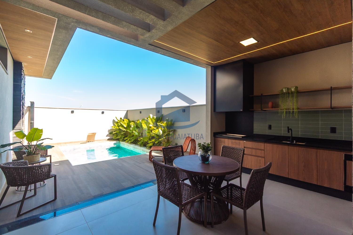 ● Forro vinílico premium nos beirais, teto da garagem e área gourmet (Marca Teto